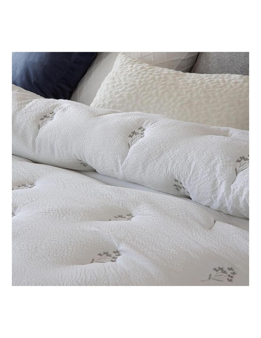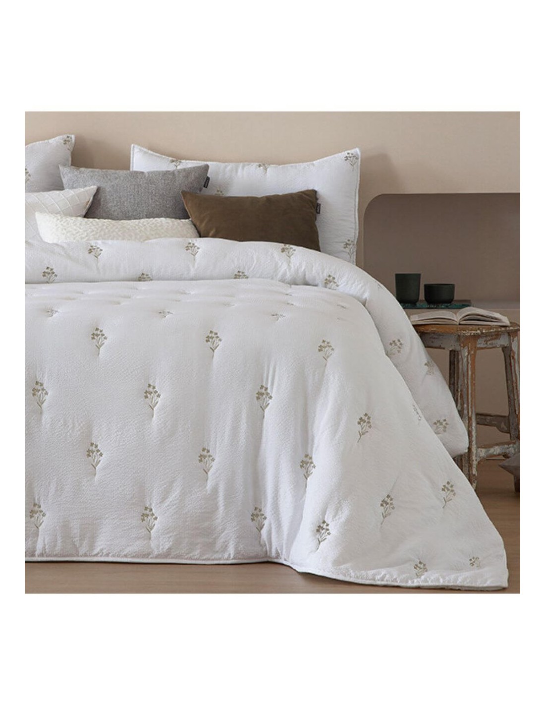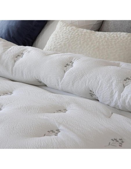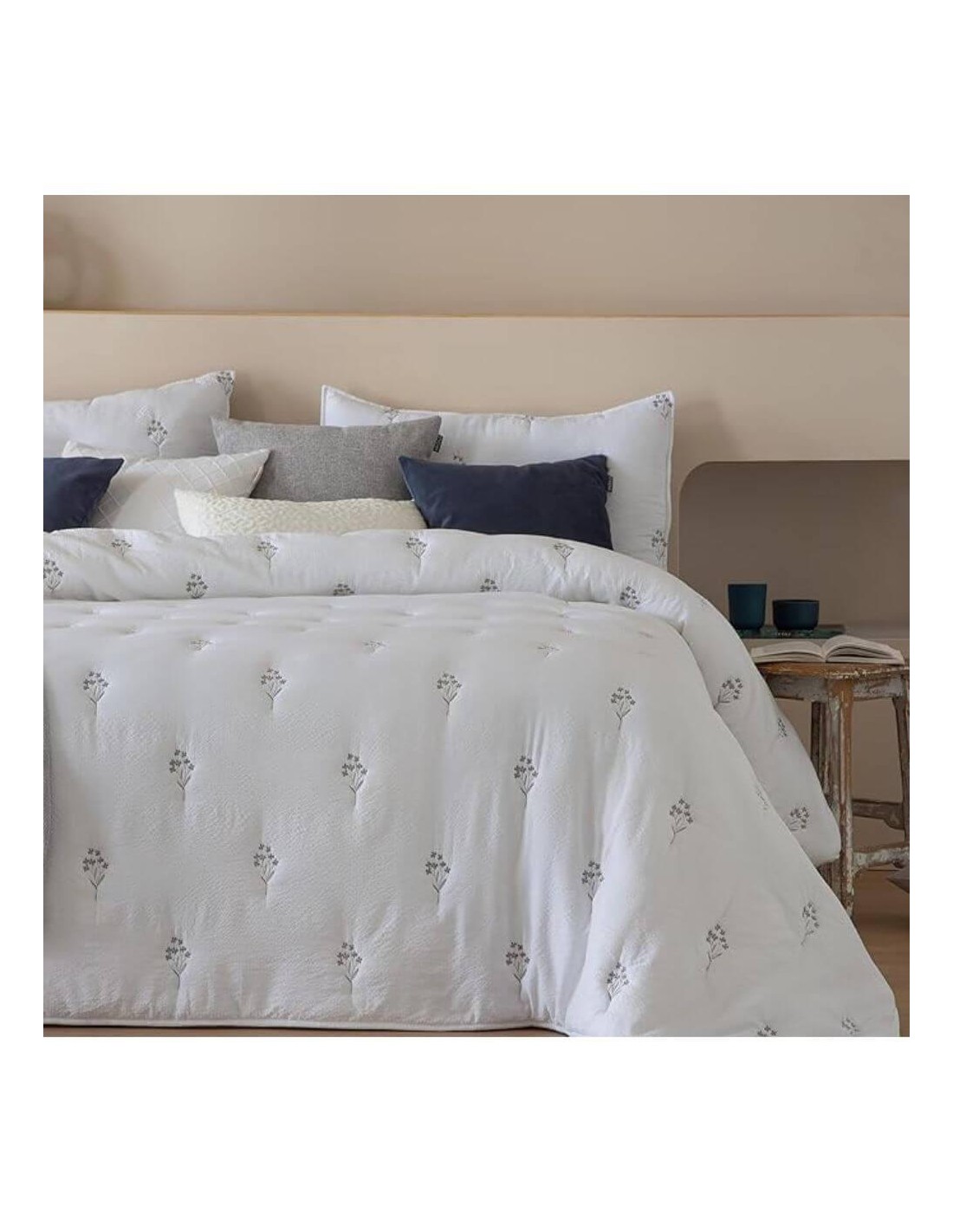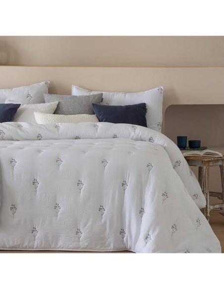 COLCHA CONFORT CON BORDADO Y DOS CUADRANTES DE COJINES